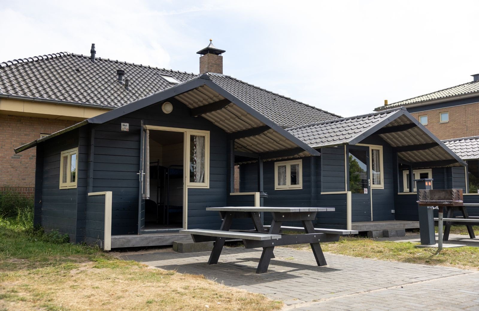 Die Hütten stehen zentral auf dem Campingplatz mit Blick auf die Minigolfanlage. Ideal für einen kurzen Aufenthalt mit praktischer Aufteilung.